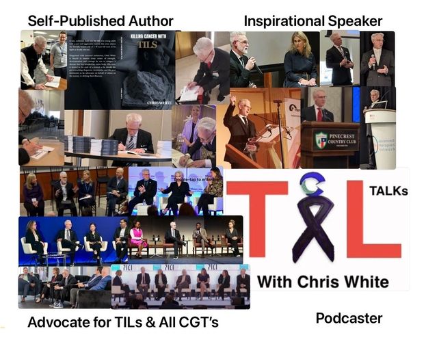 I'm Chris White, Inspirational Speaker and Self-Published Author of "Killing Cancer With TILs". Diagnosed with a rare, stage 4 terminal cancer, I survived thanks to a clinical trial for TIL Therapy, currently FDA approved. I now share my story and experiences learned full time on how I turned my "Sickness to a Success"